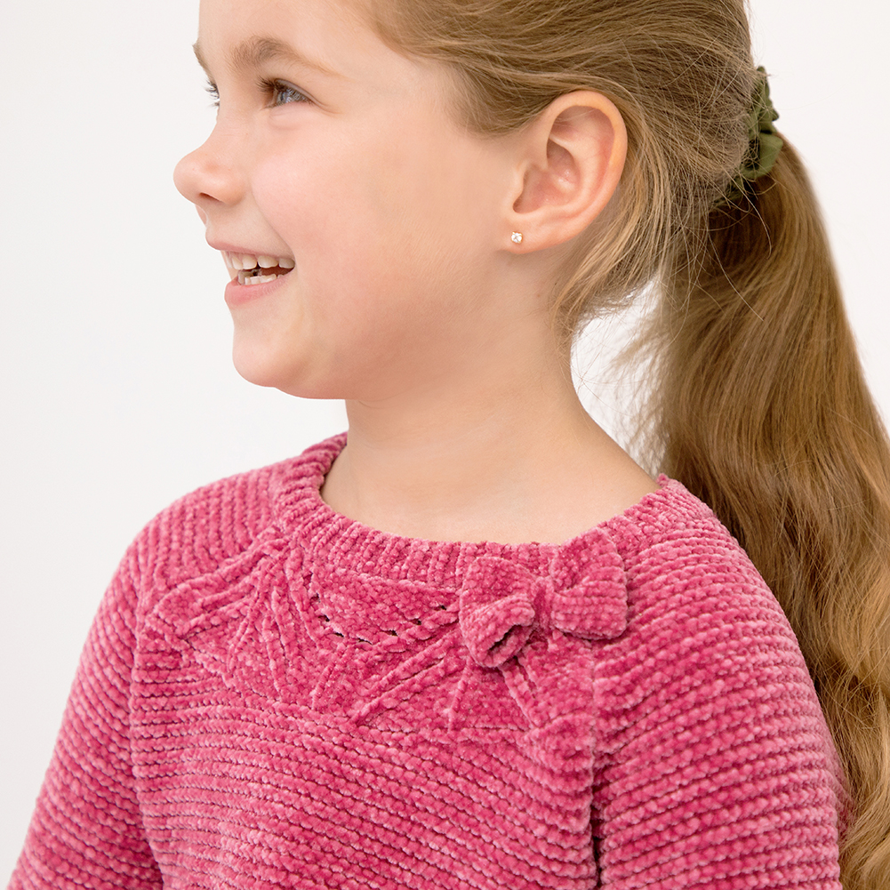 Aretes Oro Amarillo 14k Bebe, diamante 2mm